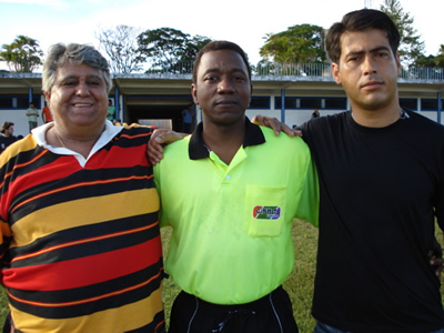 Na foto Delei ladeado pelo popular Radinho, Diretor de árbitros da LBF e o Coordenador de Futebol do Grêmio, Alexandre Castilho. |