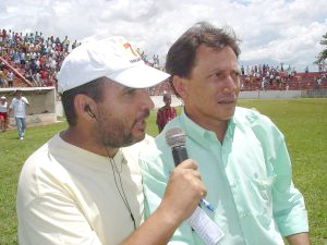 Na foto: Vanilsom concede entrevista a Mazinho Dias sobre sua expulsão no Varzeano 2008
