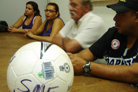 Na foto: da esquerda para a direita, a vice presidente do Sao Bento, Veruska,a diretora do Barretos II, dona Sonia, o presidente da L.B.F. Osmir Duarte Peixoto e o diretor da ADPM, Rogério Bolamor.