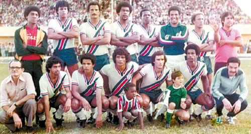 Na foto, de 1979, Pingo posa com os companheiros antes de um jogo muito importante. Para ter uma idéia, basta ver as arquibancadas.