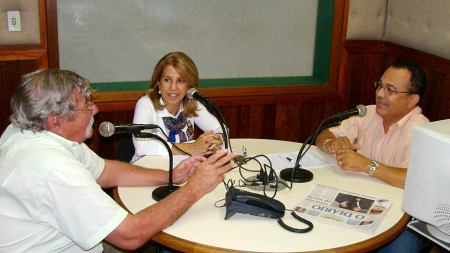 A Supersecretária de Assistência Social e Desenvolvimento Humano Célia Rodrigues e o Presidente da Liga Barretense de Futebol Osmir Duarte Peixoto, o Titão, participaram neste sábado 25/4/09, do programa "No Mundo dos Esportes" apresentado aos sábados pelo advogado Dr. José Maria dos Santos que vai ao ar a partir das 8:30 da manhã pela Rádio Independente AM 1010. Entre vários assuntos ligados ao varzeano, abordaram a entrega do material esportivo fornecido gratuitamente pela Prefeitura Municipal à todas as equipes. |