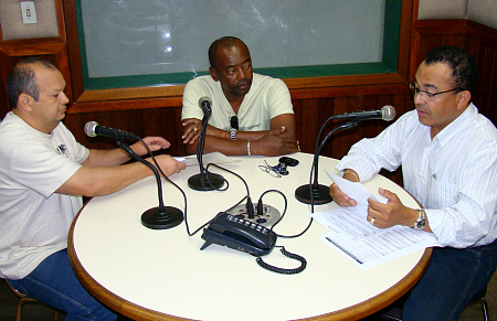 Gilberto (a esquerda), Diretor e Treinador da equipe Sampaio Correa, participante do Campeonato Amador Varzeano Série B-2 e o Professor André Oliveira (ao centro), Técnico do Barretos Esporte Clube, participaram neste sábado 18/7/09, do programa "No Mundo dos Esportes", apresentado aos sábados na Independente AM 1010 a partir das 8:30 hs pelo advogado Dr. José Maria dos Santos, Presidente da Comissão Disciplinar da Liga Barretense de Futebol.