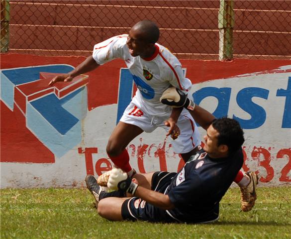 Na foto, o polemico lance em que o goleiro Juliano acerta o atacante Mil, ocasionando a sua expulsão (foto de Aquino José)