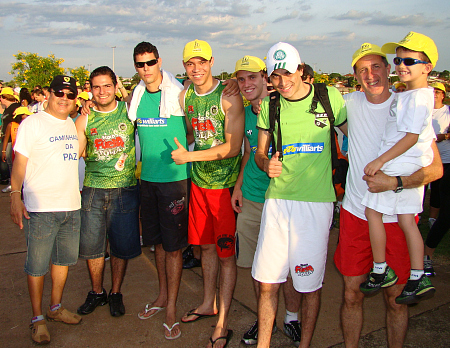 Dr.José Maria dos Santos à esquerda, Tarcísio Scannavino à direita com integrantes da Torcida organizada do BEC "Furia Jovem" participaram da "Caminhada da Paz 2009" coordenada por Gláucia Chiarelli e Cleber Carvalho da Jovem Pam FM e Paty Murta do Jornal O Diário de Barretos. |