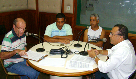 Gumercindo, Francisco (Chicão) e Silvio (foto) representantes da equipe de "Malha" de Barretos, participaram neste sábado 26/12/2009 do programa "No Mundo dos Esportes" pela Rádio Independente AM 1010, com a apresentação do advogado Dr. José Maria dos Santos. Abordaram a história da malha, suas técnicas, jogos e competiçõesde malha. Foi uma oportunidade para o ouvinte conhecer um pouco mais sobre esse esporte, em que pese pouco difundido, mas tem até Federação Paulista de Malha e competições a nível brasileiro. |