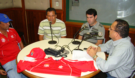 Dirigentes da equipe Frigorífico, o Presidente Rodolfo, o Diretor de Esportes Laerte e o Diretor Janio Quadros, participaram neste sábado 1-5-10 do Programa "No Mundo dos Esportes", onde anunciaram os projetos da equipe para a temporada 2010. Na oportunidade presentearam o apresentador do programa, o advogado Dr. José Maria dos Santos, com uma camisa da equipe de cor vermelha e um boné da mesma cor, com símbolos da equipe. Tudo indica que a Ferrari está de volta. É só aguardar pra ver. Obrigado pelo presente. |