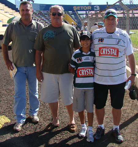 Grande número de torcedores barretenses prestigiaram jogo do BEC contra a Manonense na cidade de Matão. Na foto Joaquim do Buffet Vinicius, Ivo Duarte e Manolinho com o filho. Neste domingo, o BEC estréia em casa contra a equipe do Américo Brasiliense a partir das 10:00 horas no Estádio Antonio Gomes Martins. |