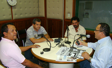 Os Presidentes Paulão da equipe Ibitu, Mauricinho da Cachoeira e e Edvaldo Coqueiro do Buffet Coqueiro participaram neste sábado 03-7-10 do programa "Esportes em Debate" pela Rádio Independente AM 1010, momento em que abordaram a rodada final do primeiro turno do campeonato Rural. O programa vai ao ar todos os sábados das 9:00 às 10:00, com a apresentação do advogado Dr. José Maria dos Santos. |