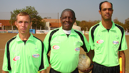 O trio de árbitros da LBF, Amilton, assistente 1, Benedito Faria no apito e Hugo assitente 2, atuaram gratuitamente em apoio ao jogo "Amigos em Ação", Barretos 5 x 1 Olímpia.