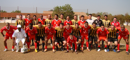 As equipes que fizeram o espetáculo no jogo amigos em ação posaram juntos para foto no jogo "Amigos em Ação", realizado no campo da ADPM, em que Barretos venceu o jogo pelo placar de 5 x 1.