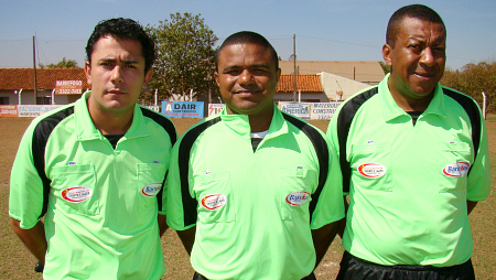12/09/2010 - Trio de árbitros Sarri, Valtinho e Serjão no jogo dos Camarões x São Bento