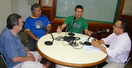 O comentarista esportivo Remiro Cachoeira, o Diretor de Árbitros da Liga Barretense de Futebol, Radinho e o maratonista Maurício Beraba, participaram do programa "Esportes em Debate" pela Rádio Independente AM 1010, com a apresentação do advogado Dr. José Maria dos Santos. Participou também ao vivo do programa o jogador Ratinho direto da Thailandia, onde joga futebol atualmente. Muito obrigado por sua audiência. Você também pode participar e dar a sua opinião e deixar a sua mensagem pelos telefones 3322-1666 ou 3322-1090. Participem. |