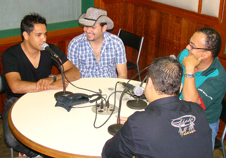 A dupla Gilson & Marcos, que cantam e encantam com canções no estilo sertanejo universitário vieram de Ribeirão Preto para participar do pergrama "Esportes em Debate" na Rádio Independente que tem a apresentação do advogado Dr. José Maria dos Santos. Gilson & Marcos estavam acompanhados do empresário e locutor Welber Amorim. Após apresentação na Rádio Independente AM 1010 e Band FM 95,3, os garotos mandaram ver, fazendo uma rápida apresentação ao vivo durante o almoço na sede da Liga Barretense de Futebol. Em breve estarão agendando um show em Barretos. Votos de muito sucesso à dupla. |