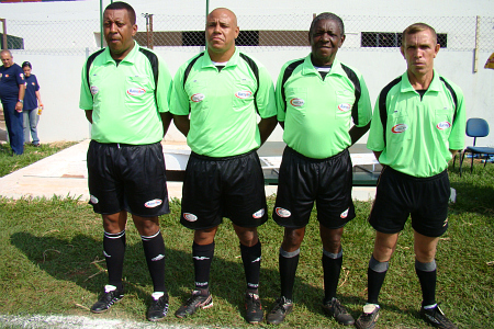 O árbitro da partida José Adilson Bispo (Bispão), e os auxiliares Serjão e Faria, juntamente com o assistente Hamilto, que atuaram na partida final do Campeonato Varzeano Série A 2010, entre as equipes ADPM e Frigorífico. A arbitragem foi muita contestada, pois, segundo reclamações da equipe do Frigorífico, o jogador da ADPM Alex Leite ao cair na área teria lançado a bola com a mão para Bodinho fazer o gol. O árbitro validou o gol estabelecendo o empate, o que daria o título para a ADPM. Após muita reclamação por parte dos jogadores do Frigorífico e não conseguindo anular o gol, o Presidente Rodolfo pediu para os jogadores se retirarem de campo. O árbitro aguardou certo tempo de acordo com o regulamento e deu por encerrada a partida que terminou em 1x1, considerando a equipe da ADPM como campeão do varzeano 2010, Série A. |