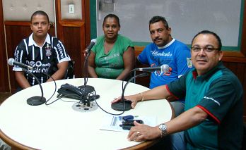 Na foto, Jose Maria dos Santos recebe nos estudios da Radio Independente, os diretores da equipe do Paissandu.