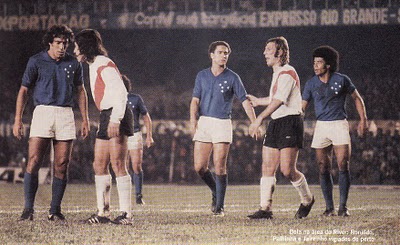 Na foto; Ronaldo, Palhinha e Jairzinho contra o River Plate na primeira partida da final em 76.