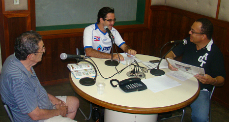 O comentarista esportivo Remiro Cachoeira e o desportista e melhor diretor varzeano de 2010 Adilson Bandeira Junior, o Juninho dos Periquitos e do Sindicato da Alimentação, participaram neste sábado do programa "Esportes em Debate" pela Rádio Independente AM 1010, com a apresentação do advogado Dr. José Maria dos Santos. O programa vai ao ar todos os sábados das 8:30 às 10 horas da manhã. Você liga 3322-1090 ou 3322-1666, participa ao vivo e deixa sua mensagem de elogio, crítica ou sugestão. Esperamos sua participação. |