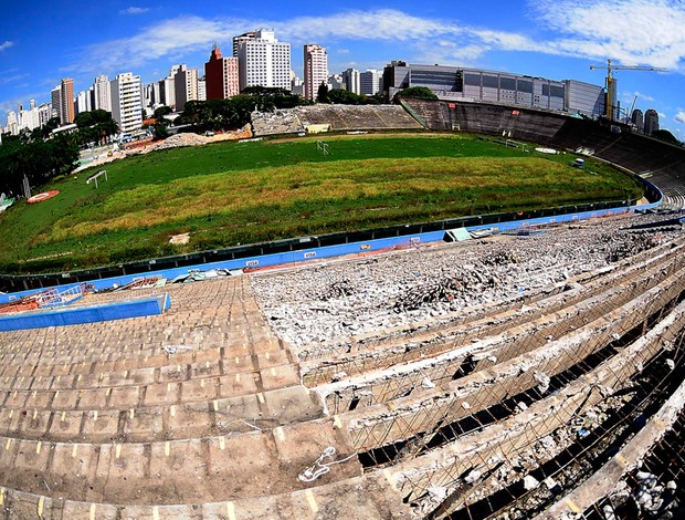 Em obras desde outubro do ano passado, o Palestra Itália já está bem diferente do que era na última partida da equipe no estádio, na derrota por 2 a 0 para o Boca Juniors, em 9 de julho passado. Se na ocasião a casa estava cheia para a despedida do emblemático palco palmeirense, hoje o que se vê são operários de um lado para o outro. E entulho. Muito entulho.
