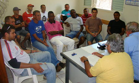 Aconteceu nesta manhã de sábado, reunião com os árbitros da Liga Barretense de Futebol que estarão atuando no certame 2011. O Presidente Titão juntamente com o Diretor de Árbitros Radinho, entregou uma cartilha para cada árbitro com algumas regras e esclarecimentos a serem adotados na temporada.