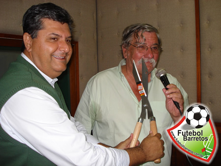 Na foto, Edson Marcondes simula "com um tesourão" o que vai acontecer no próximo sábado às 10 horas da manhã na inauguração da sede da Liga, construída na Avenida 7 esquina da Rua 8.