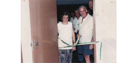 Na foto, a senhora Sonia Peixoto, esposa de Titão e o desportista Zuza, ex presidente da Portuguesa, inaurguam a então sede da L.B.F. no estadio Fortaleza.