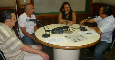 A Equipe da ADPM saiu na frente ao vencer a equipe do Barretos 2 no primeiro jogo da final da Série A do Campeonato Varzeano 2011 promovido pela Liga Barretense de Futebol. ADPM pode perder por até um gol de diferença para ser campeã. Ao Barretos 2, precisa reverter pelo mesmo placar para levar à disputa de penaltis. Na foto o comentarista Remiro Cachoeira, Coutinho da ADPM, Dona Sonia do Barretos 2 e Dr. José Maria dos Santos, no programa Esportes em Debate pela Rádio Independente AM 1010. |
