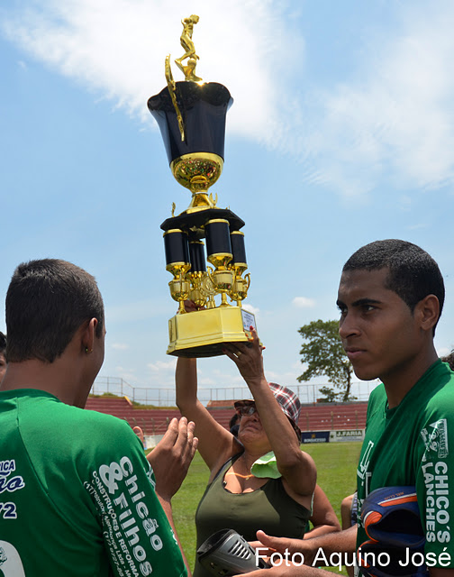 Na foto de Aquino José e "Guerreira" Dona Sonia ergue seu terceiro troféu de vice campeã.