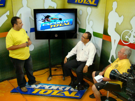 O Reporter Mazinho Dias (em pé) apresentador do programa "Chegando Junto" na Rádio Jornal 1070 e do programa "Esporte Total" pela TVB, foi o Mestre de Cerimônia na entrega do Troféu Patrono Dr.José Maria dos Santos, que aconteceu na sexta-feira 25/11/11, aos Melhores do Varzeano 2011.O evento anual é de iniciativa do Jornal Placar Geral do Jornalista Paulo Pedroso, que neste ano teve a parceria do site futebolbarretos.com.br na pessoa do seu gestor e idealizador Dr. José Maria dos Santos. Na foto, Mazinho Dias, Dr. José Maria e Paulo Pedroso no programa "Esporte Total" na TVB. Ao amigo Mazinho, muito obrigado..