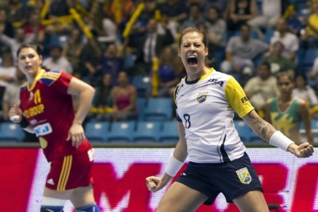 As meninas da seleção brasileira seguem fazendo bonito no Mundial de Handebol, que está sendo realizado em São Paulo. Diante de bom público no Ginásio do Ibirapuera, o Brasil bateu a Romênia por 33 a 28 e garantiu a liderança do grupo C da competição, com quatro vitórias em quatro jogos. A ponta Alexandra foi a artilheira do confronto: oito gols.
