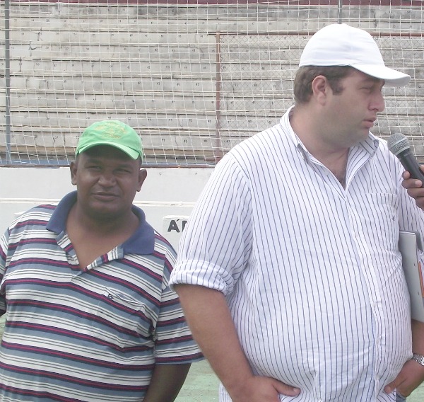 Na foto, Luisão em entrevista a imprensa, ao lado do mascote Sassá.