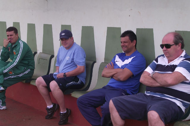 Na foto de Roberto José, o treinador Evaristo, o diretor Manolinho, o secretário Zé Reinaldo e o vice Antônio Alício.