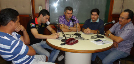 Advogados integrantes da Comissão Disciplinar da Liga Barretense de Futebol, (da esquerda para a direita) Dr. Célbio, Dr. Cristiano, Dr. João Junior e Dr. Eduardo Nunes, participaram do programa Esportes em Debate neste sábado 16-6-12, com a apresentação do advogado Dr. José Maria dos Santos. No programa que vai ao ar todos os sábados das 8:30 às 10 horas da manhã pela Rádio Independente AM 1010, foi dada as boas vindas ao novo integrante Dr. Cristiano Barcelos, popular Febinho. |