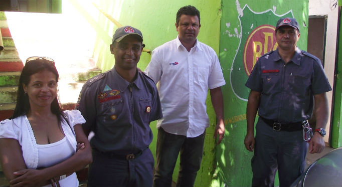 Na foto, a engenheira Débora, ao lado do tenente Valdizar, do diretor José Reinaldo e do sargento Cassiano.