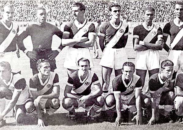 Na foto estão em pé: Augusto, Barbosa, Rafanelli, Danilo, Jorge e Ely. Agachados: Djalma - o do "causo" - Maneca, Friaça, Lelé e Chico, que formaram o time do Vasco de 1948