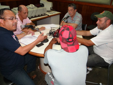 Jorginho e Juninho dos Camarões e Darci Buck da ADPM participaram neste sábado 01-12-12 do programa Esportes em Debate pela Rádio Independente AM 1010, com a apresentação do advogado Dr. José Maria dos Santos e participação do comentarista esportivo Remiro Cachoeira. Na pauta em cena comentários sobre a final que acontece neste domingo entre as equipes ADPM x Camarões no campo do bairro industrial do frigorífico. O programa vai ao ar todos os sábados das 8:30 às 10 horas da manhã. |