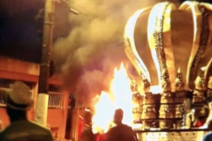 Segundo o Corpo de Bombeiros de Santos, o último carro alegórico da escola de samba pegou fogo após bater na fiação da rede elétrica na área de dispersão do sambódromo. Três pessoas que empurravam o carro morreram no local.