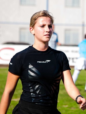Se avançar, ela levanta a bandeira. Com a assistente Fernanda Colombo Uliana é impedimento. A musa da arbitragem de Santa Catarina tem namorado e não permite jogador do Campeonato Catarinense na banheira ou cheio de graça para cima dela. A moça, natural de Criciúma e moradora de Florianópolis, garante que a única forma de aceno que os marmanjos dos clubes que disputam o estudual têm é o material de trabalho que usa, e erguido.