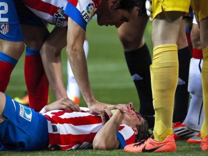"O diagnóstico é de traumatismo cranioencefálico com ferimentos internos no lado esquerdo do rosto, concretamente na pálpebra, na sobrancelha e no nariz. Os ferimentos foram suturados e curados. Ele está bem, consciente, orientado e sem dores, mas ficará em observação", diz boletim médico divulgado pelo Atlético de Madrid.