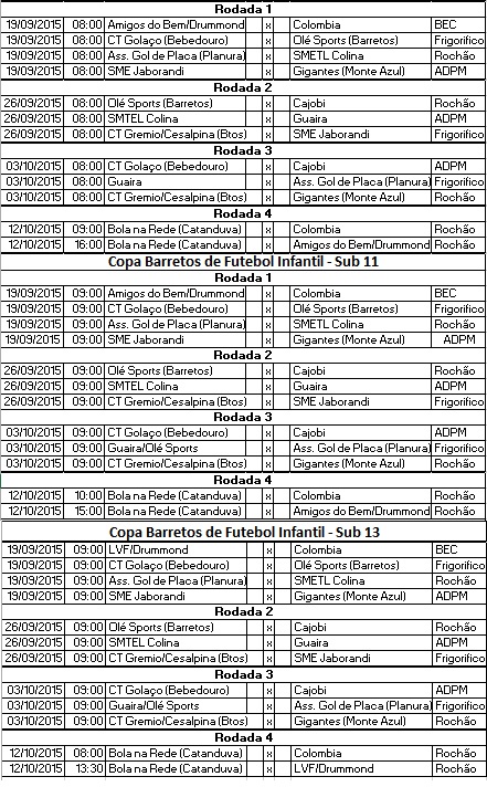 12/09/2015 - Definida Tabela Copa Barretos Futebol Infantil
