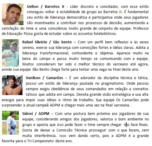 07/10/2015 - Conheça um pouco dos Técnicos Semi Finalistas da 1ª Divisão Varzeano