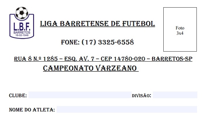 Através do site da Liga Barretense de Futebol www.futebolbarretos.com.br, os representantes das equipes poderão preencher as fichas dos atletas para o Certame Série A e B de 2018.