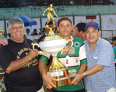 O zagueiro Jaburu da equipe Buffet Coqueiro recebeu das mãos do Diretor de Árbitros Lourival Lemes (Radinho) e do Presidente da Comissão Disciplinar Dr.José Maria dos Santos, o troféu de vice-campeão do Rural 2008. O Buffet Coqueiro perdeu o 1º jogo pelo placar de 1x0 para a equipe da Cachoeira, e o 2º jogo por 2x0. |