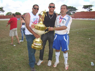 O barretense Rafael (na foto ladeado pelo jogador Laerte e diretor Edson da ADPM), goleiro que conquistou junto ao Corinthians o titulo de Campeão da Série B do Brasileirão 2008, esteve prestigiando a final do Varzeano 2008 entre Os Periquitos e ADPM
